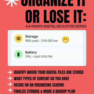 Organize It or Lose It: Digital Declutter Series (Sort, Toss, Prioritize) Decide on a first pass organizing scheme to break apart ... 17 Feb 12:00 pm - 2:00 pm