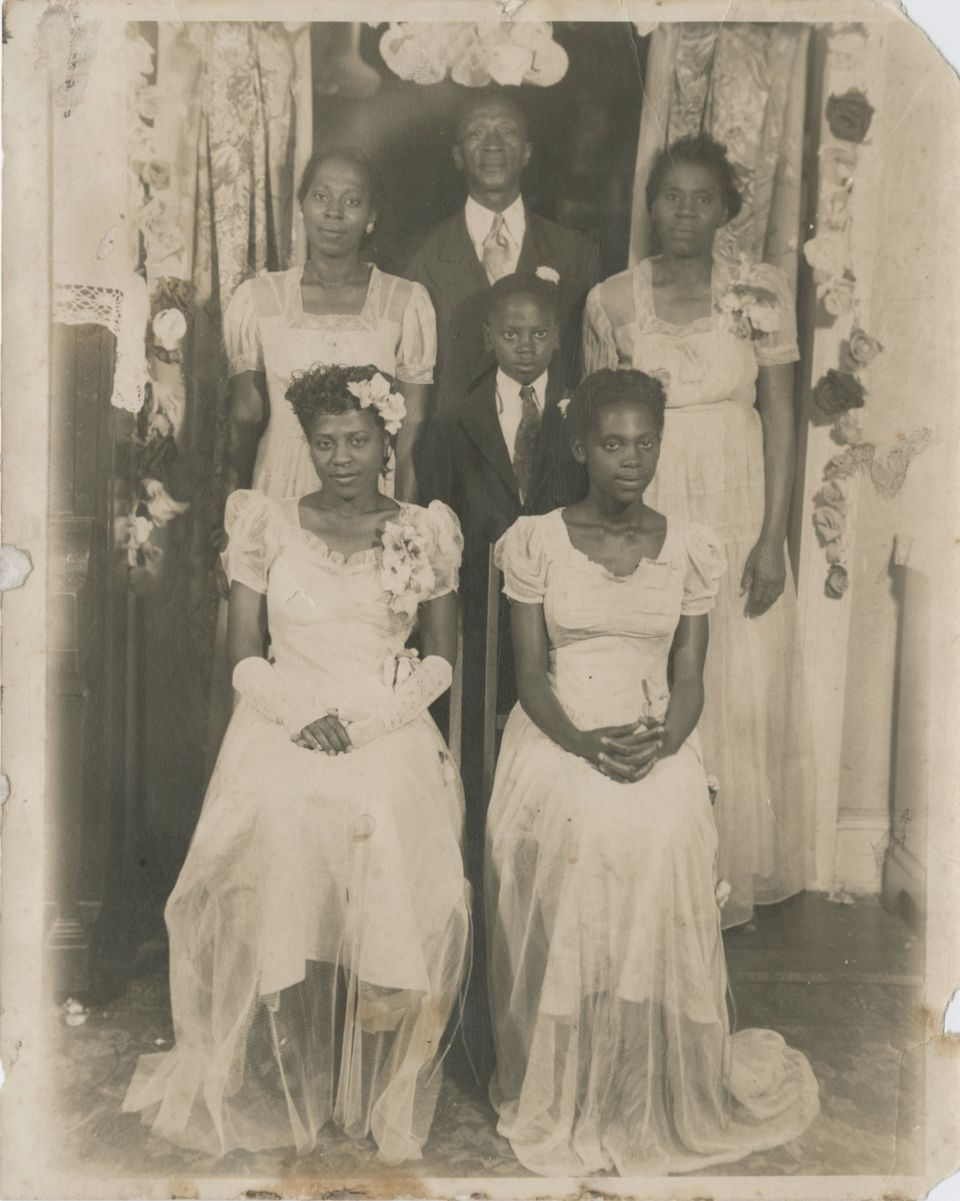 Photo: Jerry Lee Simpkins, Hardy Simpkins Sr., and their children are dressed up in preparation for a celebration of an anniversary at the Mt. Zion Baptist Church in Jamaica. They would perform together at the church. Sitting from the bottom left is Fannie Mae Simpkins and Willa Mae Simpkins. Standing from the left to right is Eleanora Lark, Hardy Simpkins Sr. and Jerry Lee Simpkins. The little boy in the middle is Ulysses Simpkins.