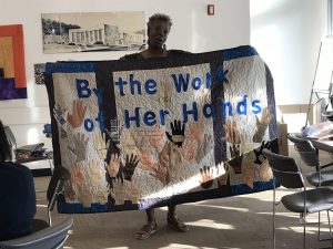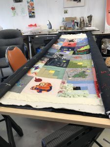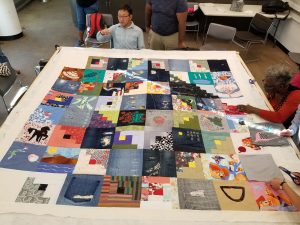 As this was a complex project, we were unsure at the outset how large or complete our end product — the story quilt itself — would be. Due to the enthusiastic participation of the quilters and our instructors, the quilt turned out to be a sizeable work of art that was indeed complete and ready for exhibition by the end of the summer. We have since had several additional opportunities to display the quilt and share its stories (with more planned in the coming months), exceeding our initial expectations by far.