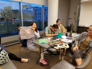 At this Saturday afternoon event, Naomi co-led a Community Conversation session at Walls-Ortiz. About 20 attendees shared stories relating to the exhibit’s migration theme, and then participated in some hands-on quilting.