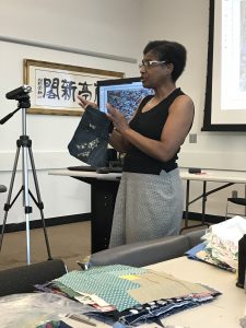 Panamanian mola style of reverse applique quilting. Judy shared the multigenerational story of her family’s migration from China to Panama and Panama to New York, and showed several examples of the mola technique.
