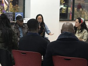 Natalie, Lori and Naomi visited the Lewis H. Latimer House Museum in Flushing to meet with executive director Ran Yan and a member of the educational staff to discuss possible programming involving the Story Quilt. This collaboration was suggested by Jacqueline Colson, a participant in the quilting project who also volunteers at the museum; she attended the meeting as well. The museum hosts many STEM-themed programs for local schools, so a tie-in with the quilt’s LilyPad component seems promising. We discussed demonstrating the quilt in the museum’s Tinker Lab, or developing a new quilt workshop series aimed at the sight-impaired, possibly in the spring pending grant funding. We agreed to keep in touch about these opportunities.