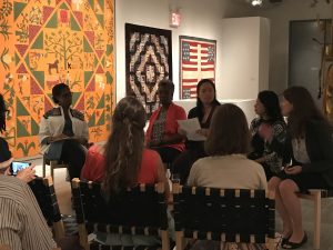 We were honored to be invited to display the Story Quilt and hold a panel discussion about it at the American Folk Art Museum’s Self-Taught Genius Gallery in Long Island City. During the final weeks of workshops, we began assembling our panel, generating questions for the discussion, and promoting the event via social media.