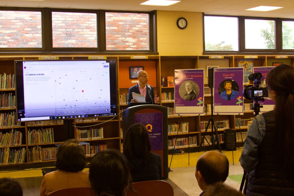 Public launch of project website (queenslib.org/explore) and press event at the McGoldrick Library in Flushing, Queens.